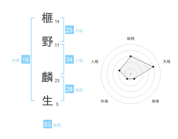 榧野 麟生さんの総格は53画の3点!