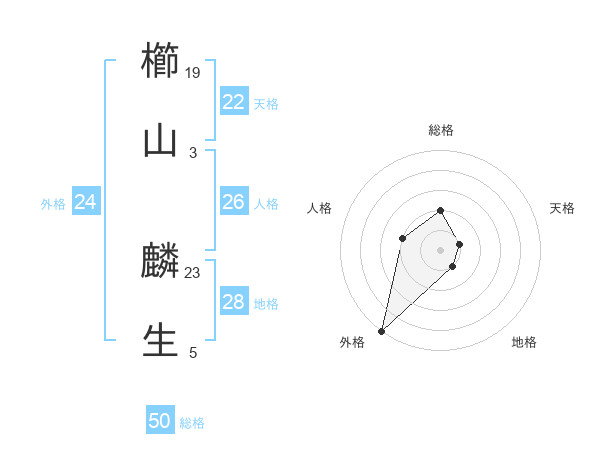 櫛山 麟生さんの総格は50画の2点!