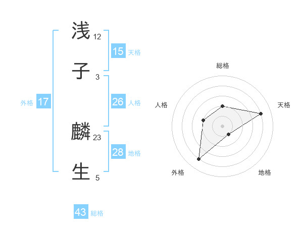 浅子 麟生さんを姓名の画数から五運を鑑定