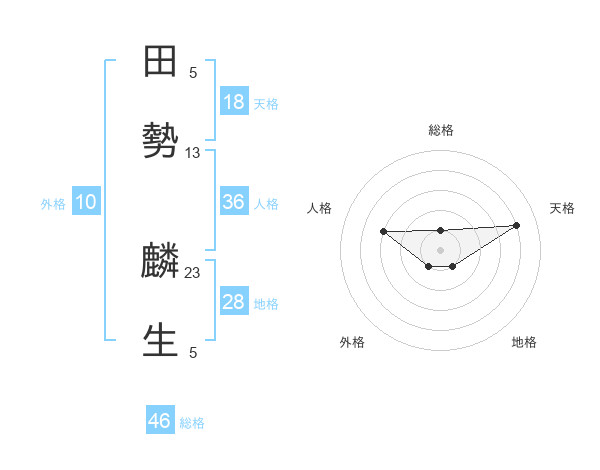 田勢 麟生さんを姓名の画数から五運を鑑定