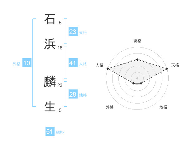 石浜 麟生さんの総格は51画の3点!