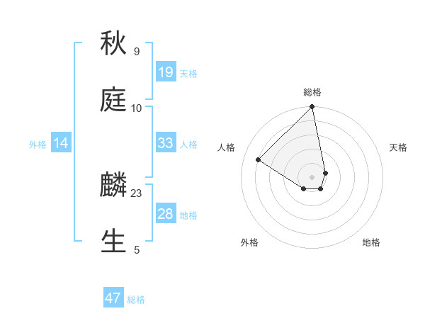 秋庭 麟生さんの総格は47画の5点!