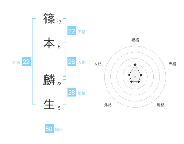篠本 麟生さんの天格は22画の1点!