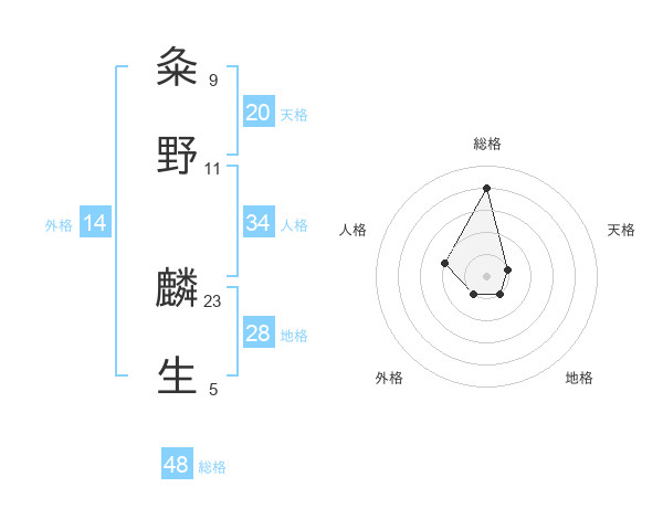 粂野 麟生さんを姓名の画数から五運を鑑定