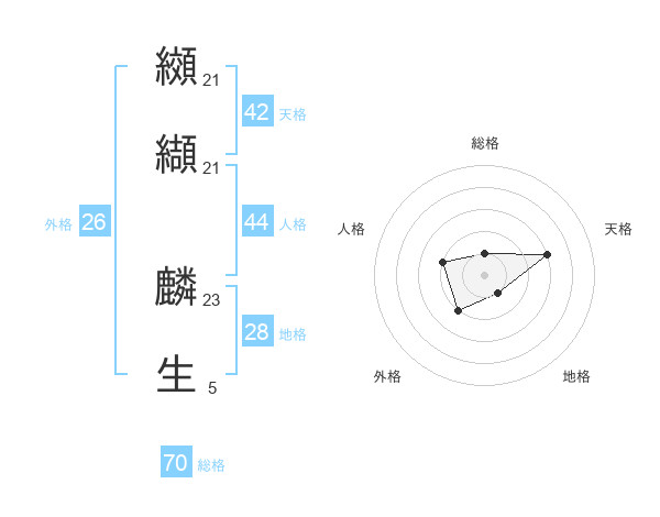 纐纈 麟生さんの総格は70画の1点!