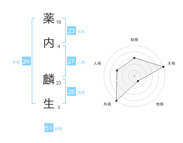 薬内 麟生さんの総格は51画の3点!