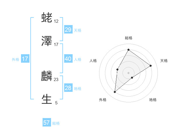 蛯澤 麟生さんの天格は29画の4点!