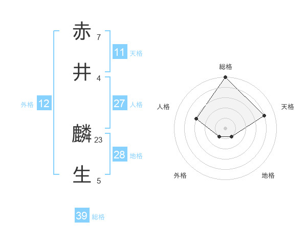 赤井 麟生さんを姓名の画数から五運を鑑定