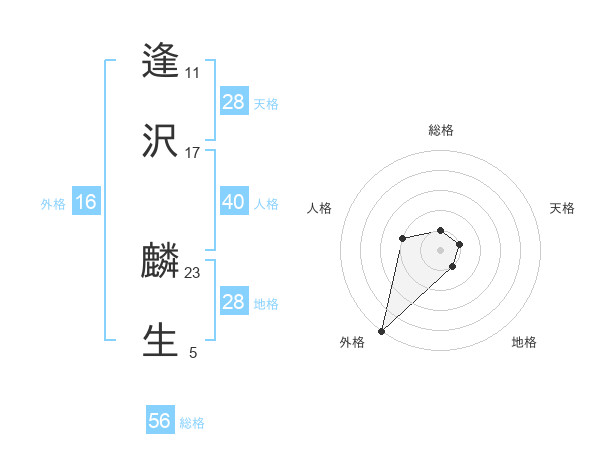 逢沢 麟生さんの外格は16画の5点!