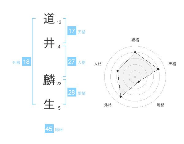道井 麟生さんの天格は17画の4点!