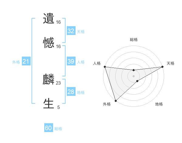 遺憾 麟生さんの外格は21画の5点!