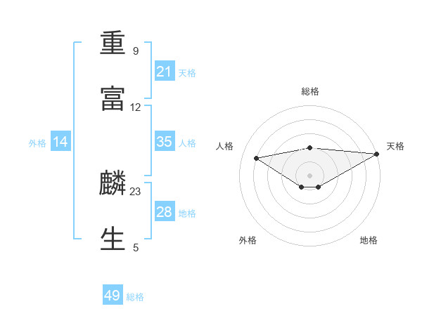 重富 麟生さんの総格は49画の2点!