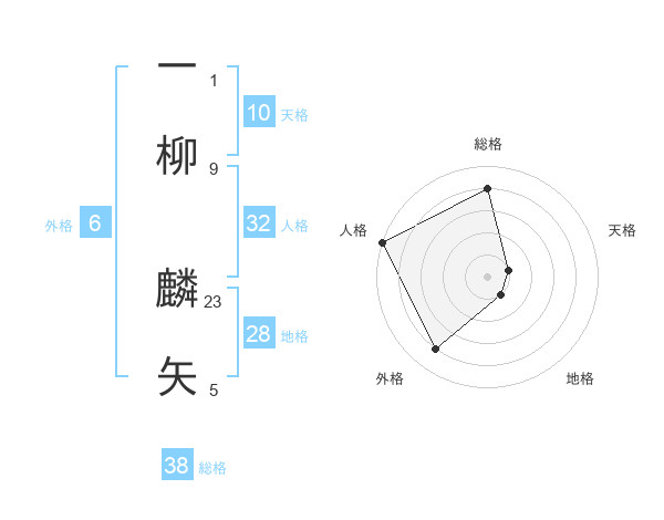 一柳 麟矢さんの総格は38画の4点!