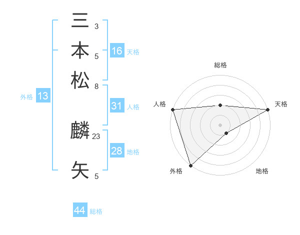 三本松 麟矢さんを姓名の画数から五運を鑑定