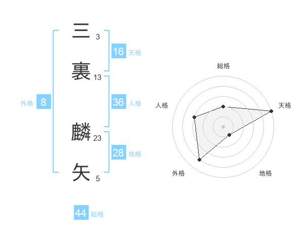三裏 麟矢さんの天格は16画の5点!