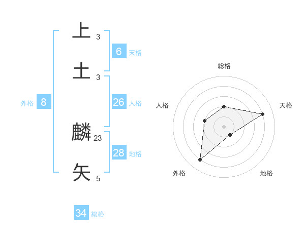 上土 麟矢さんを姓名の画数から五運を鑑定