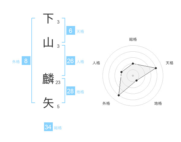下山 麟矢さんを姓名の画数から五運を鑑定