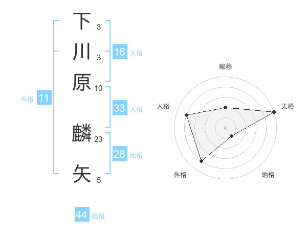 下川原 麟矢さんを姓名の画数から五運を鑑定