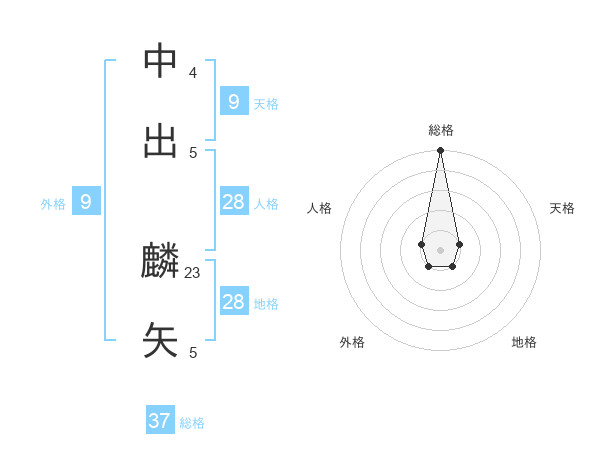 中出 麟矢さんを姓名の画数から五運を鑑定