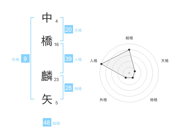 中橋 麟矢さんを姓名の画数から五運を鑑定