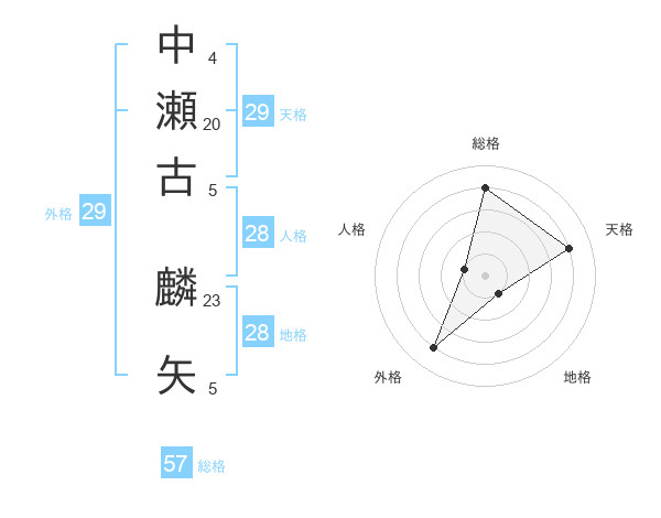 中瀬古 麟矢さんの天格は29画の4点!
