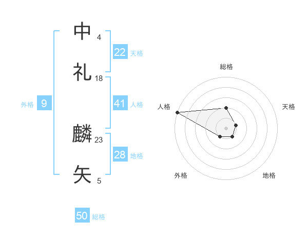 中礼 麟矢さんを姓名の画数から五運を鑑定