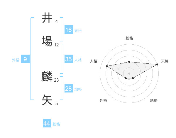 井場 麟矢さんを姓名の画数から五運を鑑定