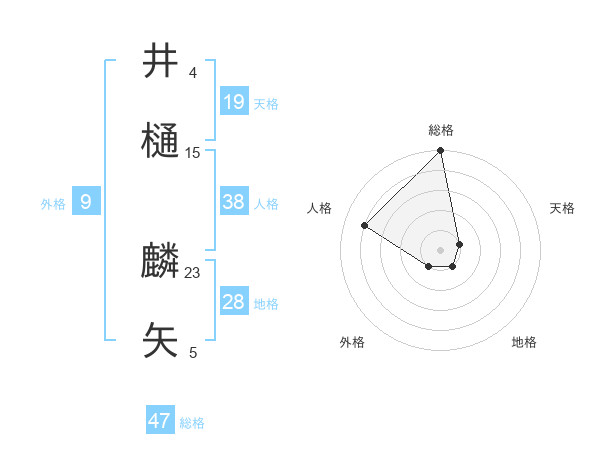 井樋 麟矢さんの総格は47画の5点!