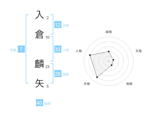 入倉 麟矢さんの総格は40画の2点!