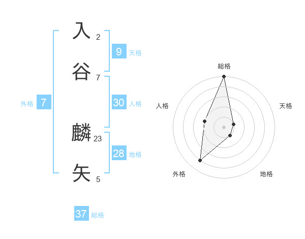 入谷 麟矢さんの総格は37画の5点!