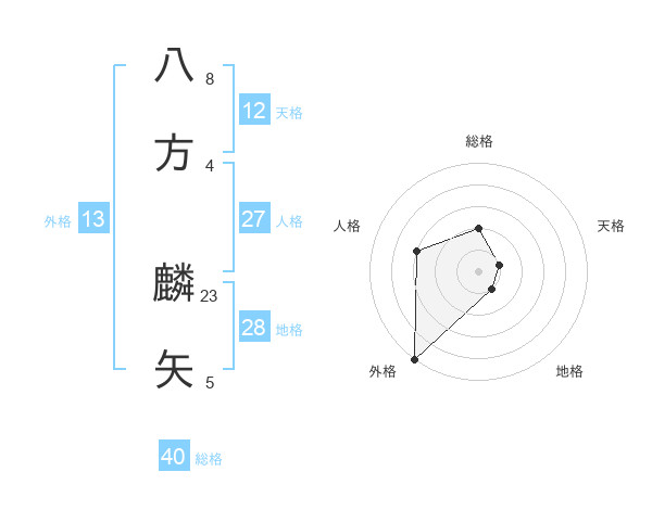八方 麟矢さんの総格は40画の2点!
