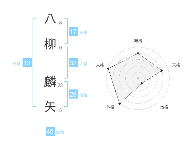 八柳 麟矢さんを姓名の画数から五運を鑑定