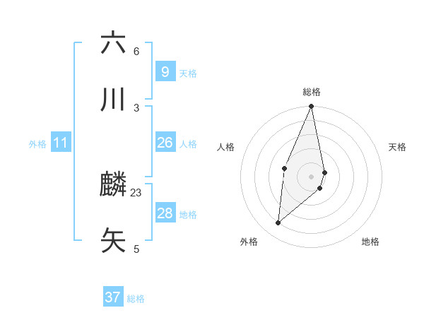 六川 麟矢さんの総格は37画の5点!