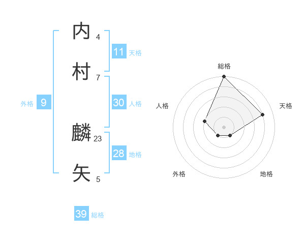 内村 麟矢さんを姓名の画数から五運を鑑定