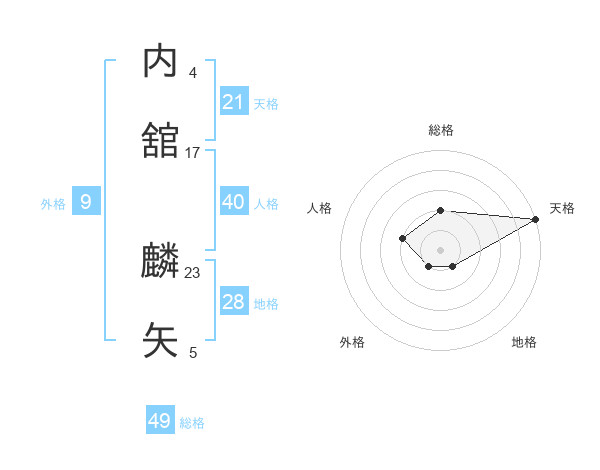 内舘 麟矢さんの総格は49画の2点!
