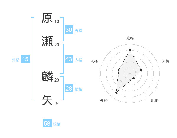 原瀬 麟矢さんの総格は58画の4点!