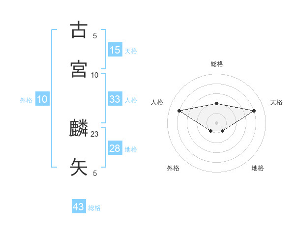 古宮 麟矢さんの総格は43画の2点!