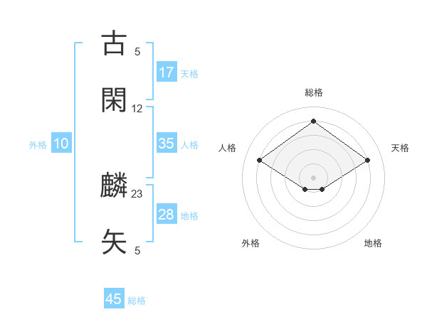 古閑 麟矢さんの総格は45画の4点!