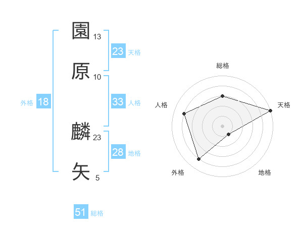園原 麟矢さんの総格は51画の3点!