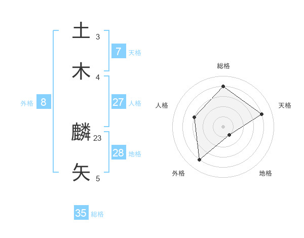 土木 麟矢さんを姓名の画数から五運を鑑定