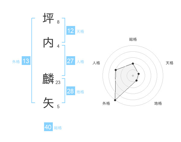 坪内 麟矢さんを姓名の画数から五運を鑑定