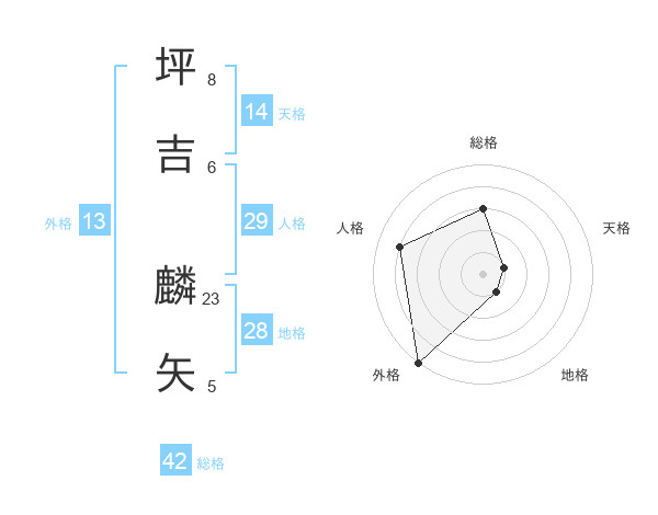 坪吉 麟矢さんの総格は42画の3点!