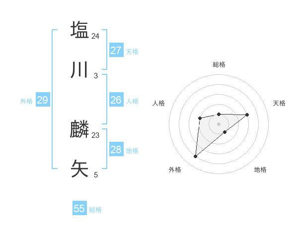 塩川 麟矢さんの総格は55画の1点!