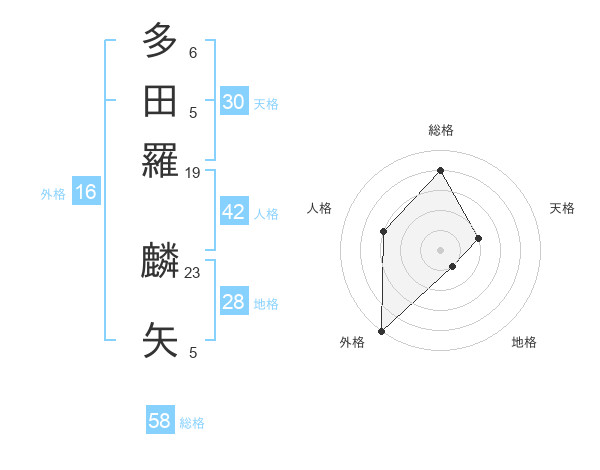 多田羅 麟矢さんの総格は58画の4点!