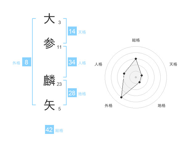 大参 麟矢さんを姓名の画数から五運を鑑定