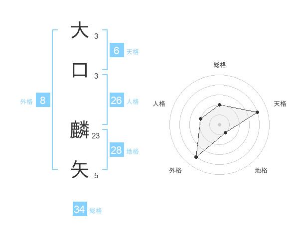 大口 麟矢さんの総格は34画の2点!