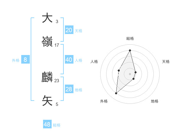 大嶺 麟矢さんの総格は48画の4点!