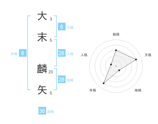 大末 麟矢さんを姓名の画数から五運を鑑定