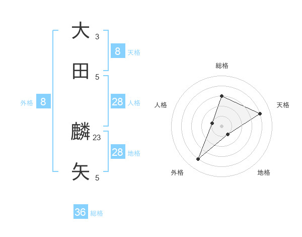 大田 麟矢さんの天格は8画の4点!