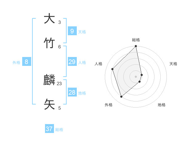 大竹 麟矢さんの総格は37画の5点!